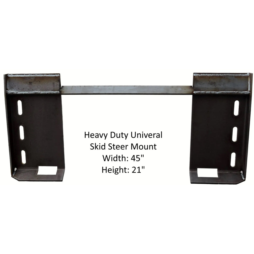 IMPORTANT NOTE: It comes equipped with a standard universal skid steer mounting Plate, but other mounting plate styles can be selected. Please confirm your mounting style prior to ordering, as it is not possible to change after they have been welded on. All mounting plate styles except the Universal Skid Steer Mount are considered custom orders and cannot be returned.